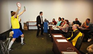 “Desarmado” pelo riso, o público então fica muito mais receptivo aos ensinamentos e técnicas abordadas. Com o aspecto lúdico intensificado, o terreno fica preparado para que sua equipe de vendas e colaboradores da empresa, busquem com toda gana e desejo, superar os desafios e alcançar as metas e objetivos traçados.